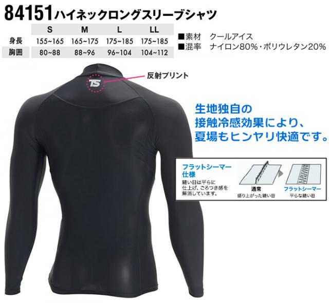 TSデザイン 藤和 TS-DESIGN ハイネックロングスリーブシャツ 84151 冷感素材 インナーシャツ アンダーウェア 吸汗速乾コンプレッション【即日発送】