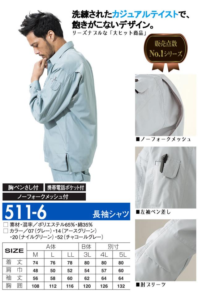 長袖シャツ アタックベース 5116 春夏 作業服 作業着 ユニフォーム 511シリーズ