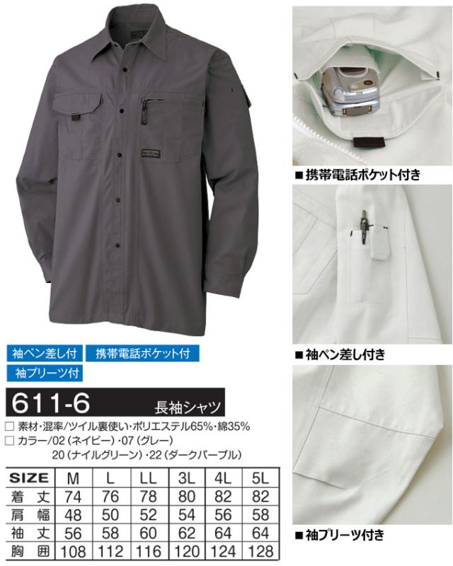 アタックベース 6116 長袖シャツ ツイル 作業服 作業着 ユニフォーム 613シリーズ