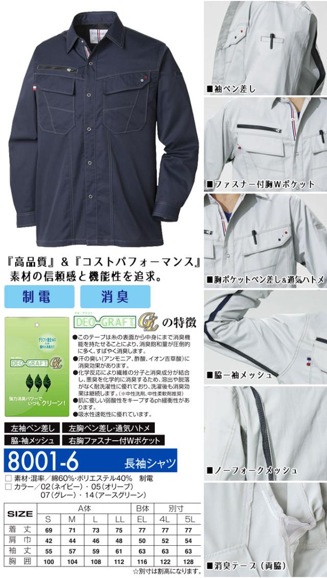 長袖シャツ アタックベース 80016 春夏 作業服 作業着 ユニフォーム 制電 消臭 8001シリーズ