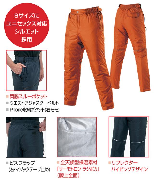 ■ユニセックス対応の防寒パンツ。