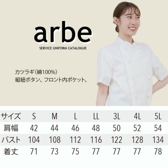 コックコート 半袖 綿100% 男女兼用 火に強い arbe アルベ CA-115 【男女兼用】カフェ 飲食店 サービス業 制服 レストラン ユニフォーム