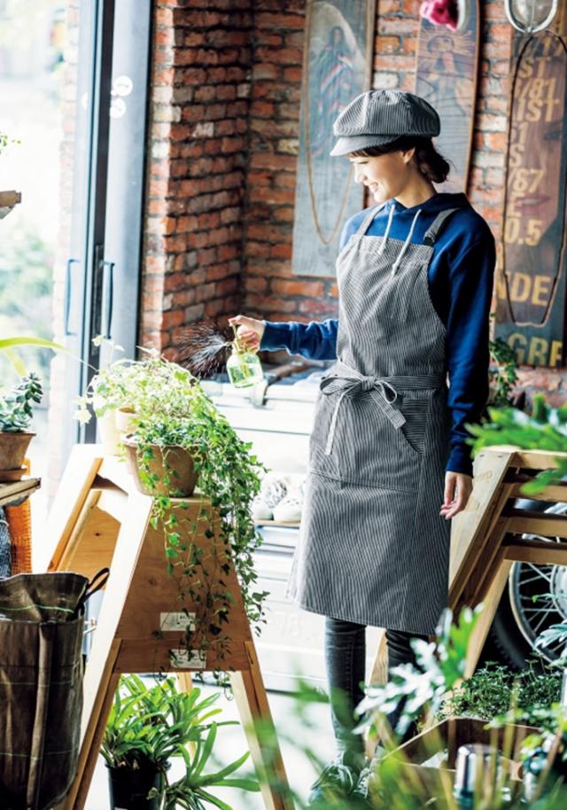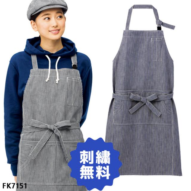 ヒッコリー胸当てエプロン FK7151 ユニセックス 男女兼用 飲食店 サービス業 ユニフォーム 制服 カフェ