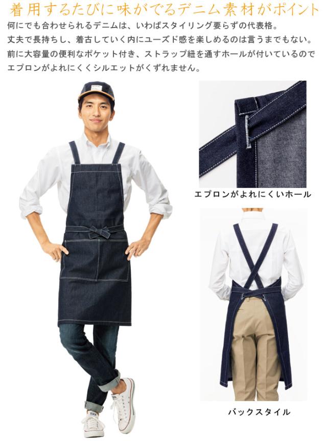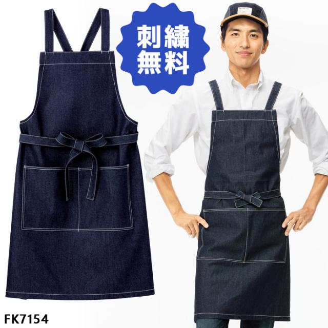 デニム胸当てエプロン FK7154 ユニセックス 男女兼用 飲食店 サービス業 ユニフォーム 制服 カフェ