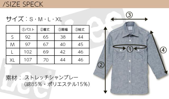 Lee レディース シャンブレー七分袖シャツ LCS43004 ストレッチ 女性用 飲食店 サービス業 ユニフォーム 制服 カフェ ボンマックス