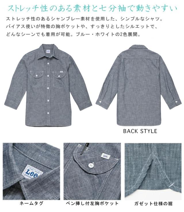Lee ストレッチシャンブレー 七分袖シャツ LCS46004 メンズ 飲食店 サービス業 ユニフォーム 制服 カフェ ボンマックス