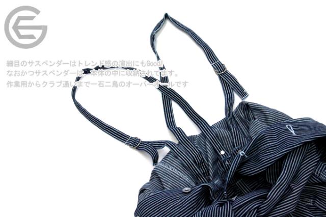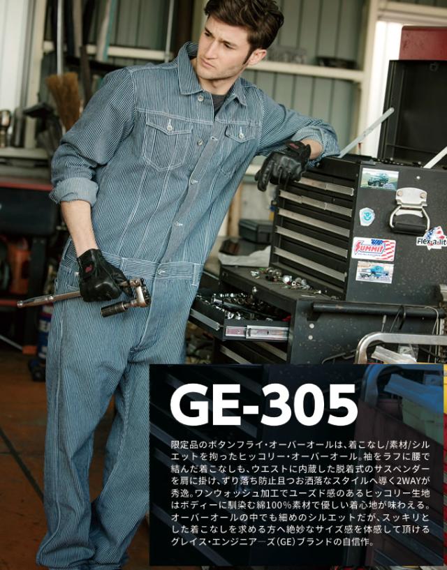 グレースエンジニアーズ ヒッコリー長袖つなぎ GE-305 サスペンダー付き 作業服 作業着