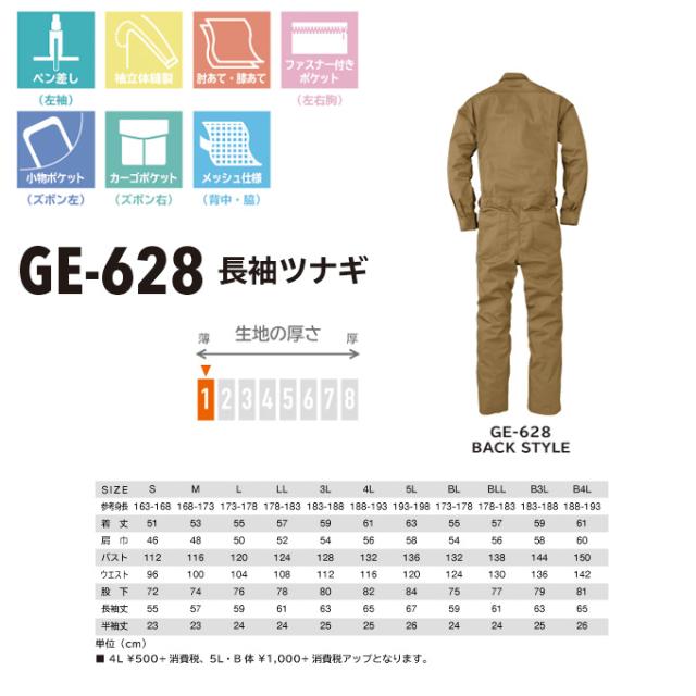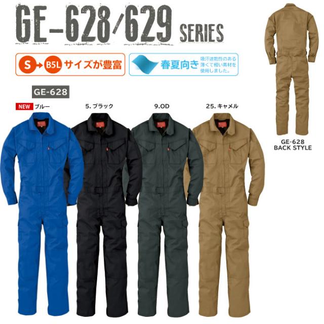 グレースエンジニアーズ GE-628 長袖つなぎ(薄手素材) 春夏用 作業服 作業着