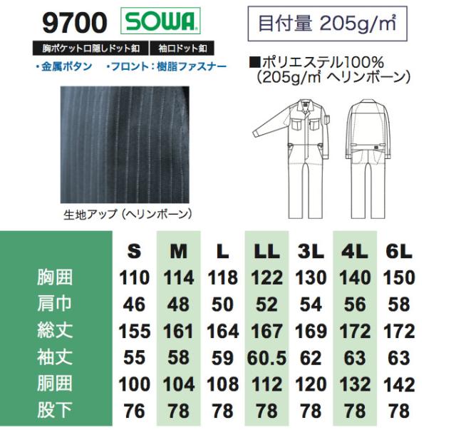 桑和 SOWA-9700 長袖つなぎ タフ素材 制電性素材 作業服
