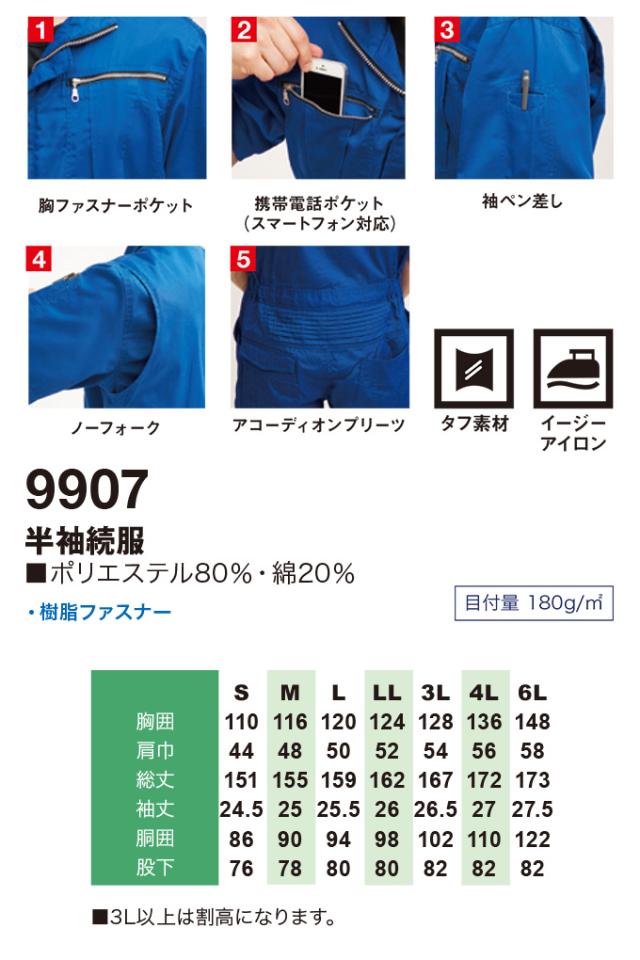 ■商品名:SOWA 桑和 9907 タフ素材 半袖つなぎ