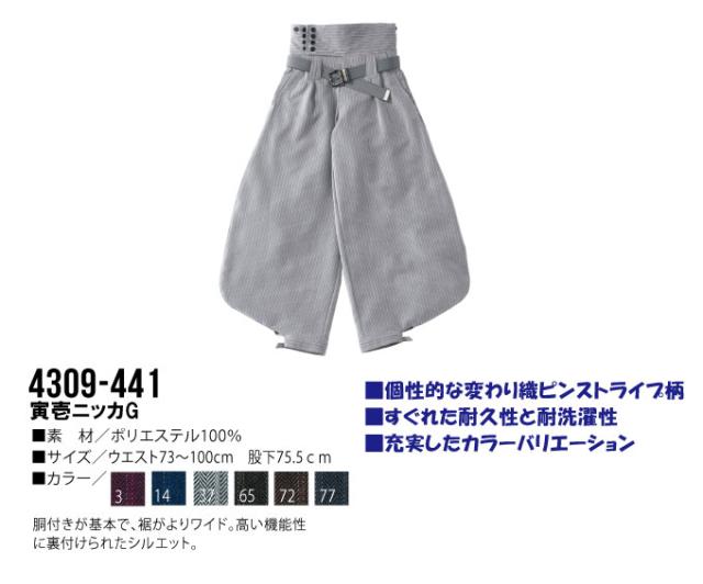 寅壱 寅壱ニッカG 73-100 耐久性 作業服 作業着 4309シリーズ 4309-441 ピンストライプ柄
