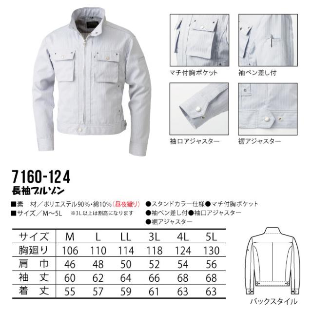 寅壱 長袖ブルゾン 耐久性 吸汗性 昼夜織 スタンドカラー 7160シリーズ 7160-124 作業服 作業着