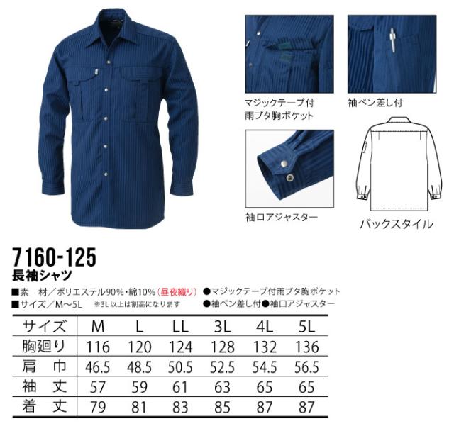 寅壱 長袖シャツ 耐久性 吸汗性 7160シリーズ 7160-125 作業服 作業着 昼夜織