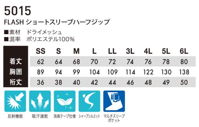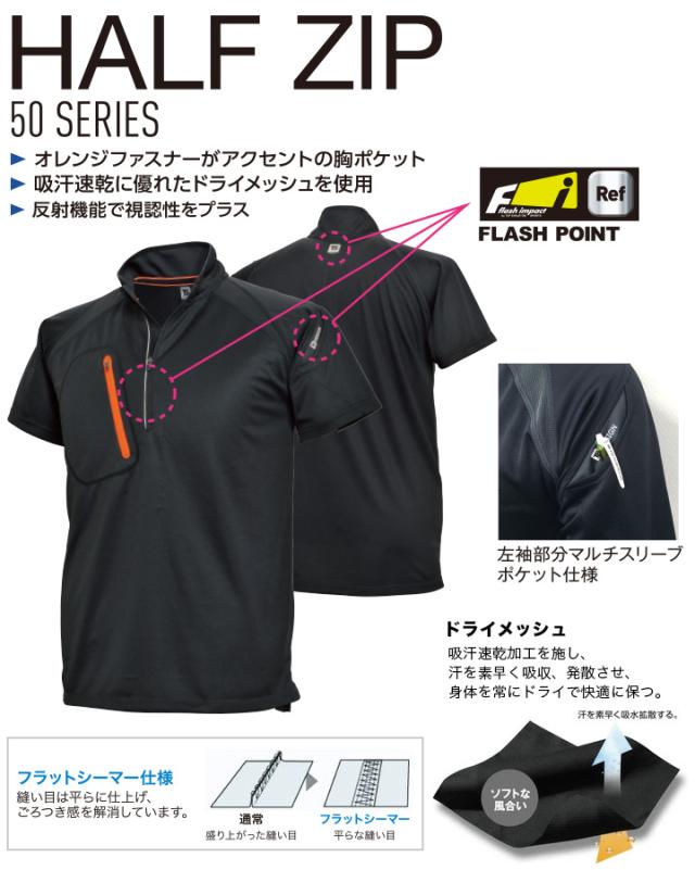 TSデザイン 藤和 TS-DESIGN 半袖ハーフジップポロシャツ 5015 フラッシュインパクト 反射