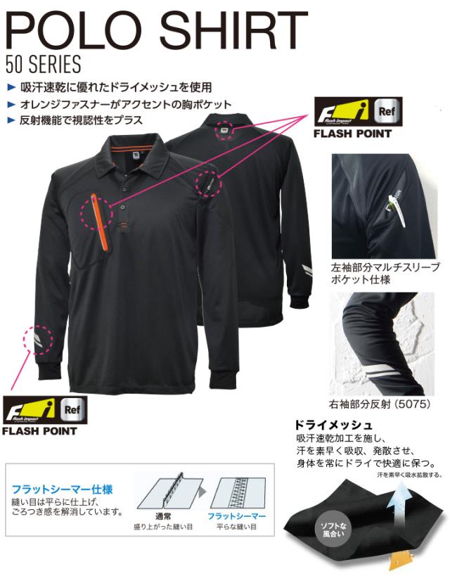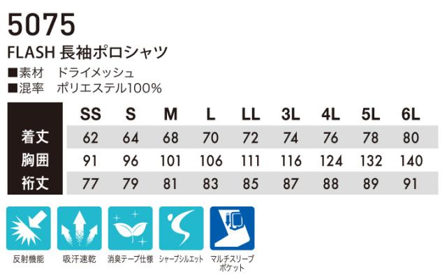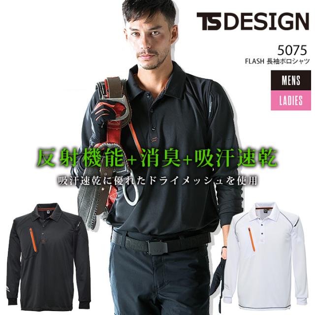 TSデザイン 藤和 TS-DESIGN 長袖ポロシャツ 5075 反射機能 男女兼用