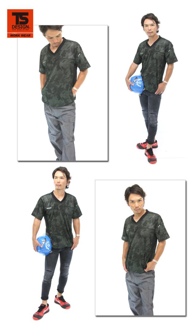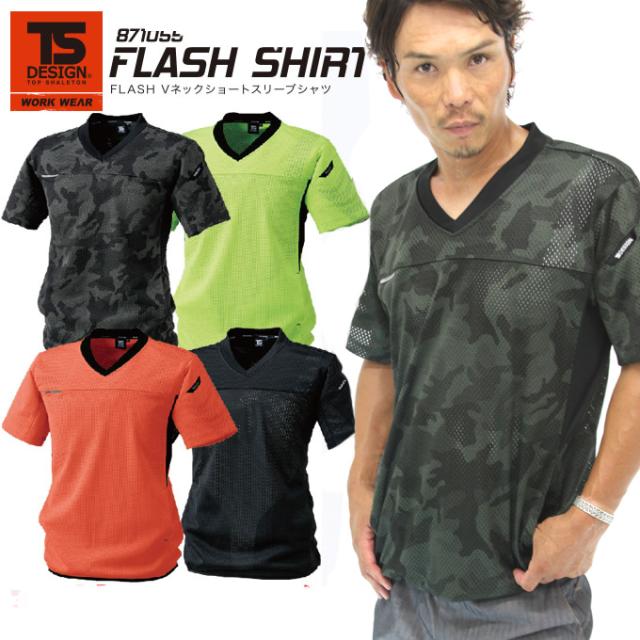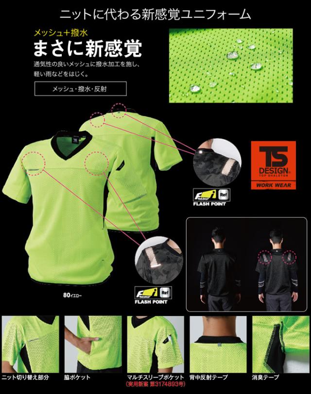 TSデザイン 藤和 TS-DESIGN FLASH Vネックショートスリーブシャツ 871055 メッシュシャツ 半袖シャツ 反射 作業服 作業着