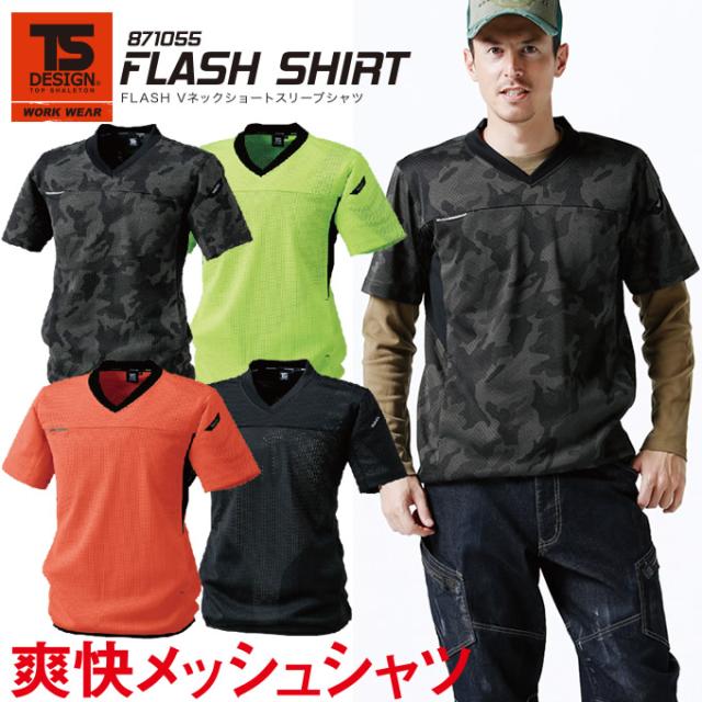 TSデザイン 藤和 TS-DESIGN FLASH Vネックショートスリーブシャツ 871055 メッシュシャツ 半袖シャツ 反射 作業服 作業着