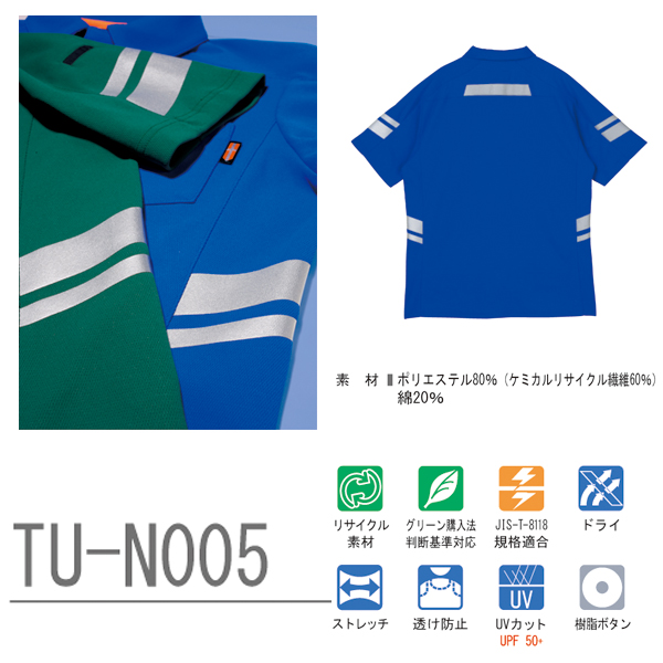 半袖ポロシャツ TU-N005 タカヤ商事【Night Knight】ナイトナイト ドライ ストレッチ 帯電防止 反射材 TU-N001シリーズ 作業服 作業着