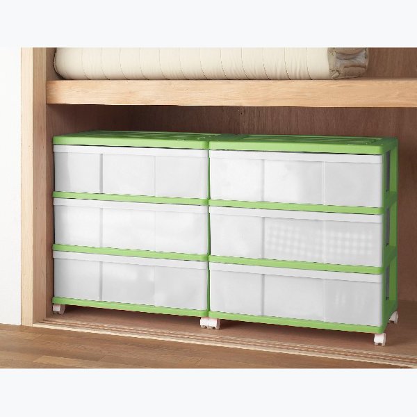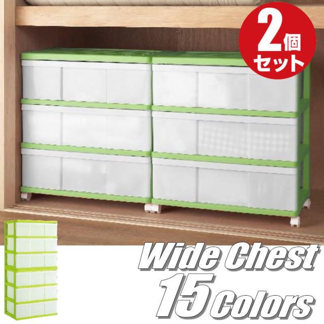 収納ボックス 収納ケース 引き出し ワイド チェスト プラスチック 3段 2個組 幅60cm おしゃれ グリーン 送料無料【自社製造】