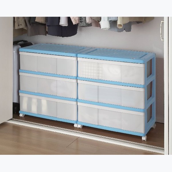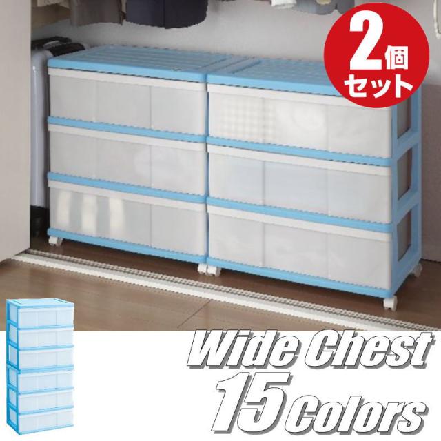 収納ボックス 収納ケース 引き出し ワイド チェスト プラスチック 3段 2個組 幅60cm おしゃれ ブルー 送料無料【自社製造】