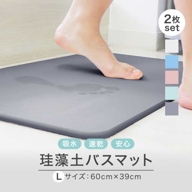 【ノンアスベスト】 珪藻土 バスマット 2枚セット 60cm 速乾 マット 珪藻土バスマット Lサイズ 足拭きマット 足ふきマット お風呂マット 水切りマット 吸水 速乾 抗菌 防臭 おしゃれ かわいい バス用品 新生活 送料無料