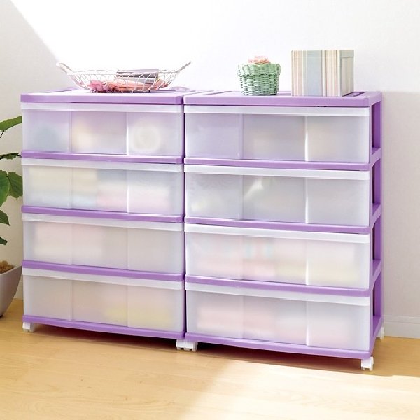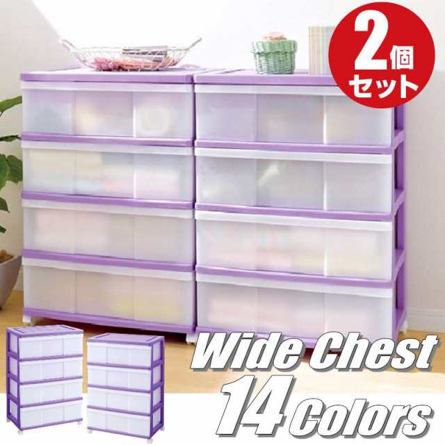 収納ボックス 収納ケース 衣類 押入れ 引き出し ワイド チェスト プラスチック 4段 2個組 幅60cm おしゃれ バイオレット 送料無料