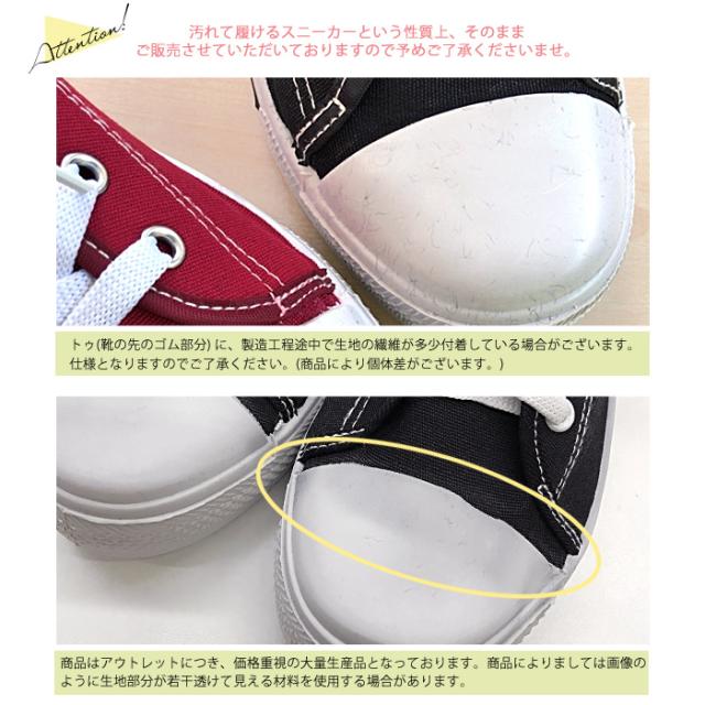 | ハイカットとローカット選べるシンプルスニーカー ベーシックなデザインでどんな服にも合わせやすい♪ ソール部分に入ったラインがポイント! 日本の縫製と違って細かい処理が得意ではありません。 以上の理由により商品は「アウトレット」にてご販売させていただいております。 (出荷前の全品検品は行っております) ■ブランド:Lagalt(ラガルト) アウトレットSHOESシリーズ ■足のサイズ(目安) 35/36S:22.0〜22.5cm 36/37S:22.5〜23.0cm 37/38S:23.0〜23.5cm 38/39S:23.5〜24.0cm 39/40S:24.0〜24.5cm 40:24.5〜25.0cm ※入荷時期により個体差がある場合がございますので、目安となります。 ■ヒール:(約)1cm モデル:足のサイズ23cm(38サイズ着用) ※モデル着用写真は屋内外での撮影の為、光の影響で実際のカラーとは異なる場合がございます。カラーバリエーションの画像が実物に最も近いお色味です。そちらをご参考ください。 ■中敷について 中敷はお客様が市販の中敷と交換できるよう仮留め程度で入れています。 中敷を交換される場合は、やや強めに引っ張っていただくと簡単に外れますので、お好みの中敷と交換されてご使用くださいませ。 また、ご使用中にずれたりした場合は、接着剤または市販のテープ等で補強お願い致します。 ■お客様へ(アウトレット表記について) 商品は手作りによる大量生産のため、次の通り難癖がございますが不良品ではありません。ご注意くださいませ。 ・製造時の小さなキズ・縫い糸のはみ出しや製造時に発生する少しの汚れが残っている場合があります。 ・縫い糸のはみ出しの処理がうまく出来ていない、またソールのゴムやバリのカットが緩くてやや残っている場合があります。 ・シューズ周りのデザインラインは真っ直ぐでない場合がありますが、履いていただくと気になる程度ではございません。 ・トゥ(靴の先のゴムの部分)は、キレイで無キズなお品もあれば、少しくすんだユーズド感のあるようなお品もございます。 ※上記記載事項以外にも、当社所見で不良品と認められない場合はそのままご発送させていただいております。 雨の日や汚れた場所でも気軽に履ける「スニーカー」という性質上、問題のない範囲で超激安アウトレット価格にて販売させていただいております。細かいことを気にされるお客様は大変失礼ではございますが、ご購入をご遠慮くださいませ。 靴の臭いについて ・当店のアウトレットシューズはその殆どを海外の工場から買い付けております。当店検品時を除き、輸送を含めて一度も開封されずにお客様のお手元に届く場合があります。従いまして、量販店で販売されているような環境ではなく、工場製造時に使用された接着剤や生地の臭いなどが残っている場合がありますので予めご了承くださいませ。 [1808] |