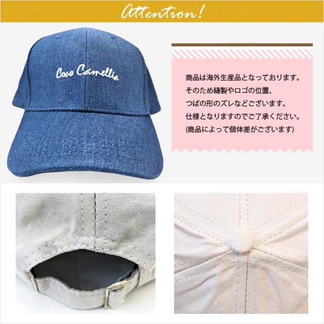 ※デニムキャップにつきましては、生地糸を染めた後に水洗いいたしておますので、生地仕様に一部濃淡がみられることがございます。予めご了承くださいませ。