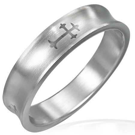 緩やかに表面がアールを帯びたステンレスリングにクロスをデザインしたスタイリッシュな指輪です。