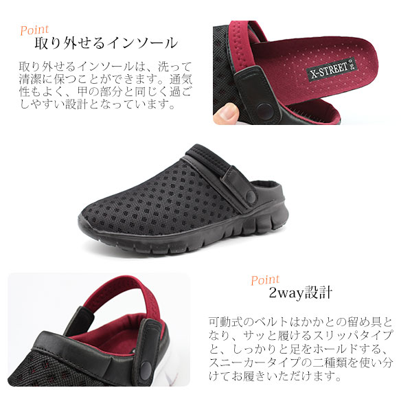 メンズ サンダル 靴 黒 ブラック グレー 軽量 軽い 2way 幅広 ワイズ 3E 通気性 XSTREET XST-6032 ミュール おしゃれ プチプラ プレプラ 人気 室内 オフィス 部屋 シンプル