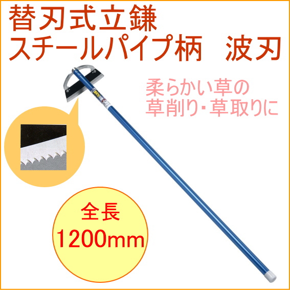 替刃式立鎌 スチールパイプ柄 波刃 (08054) 畑 庭 草取り 草掻き 土寄せ 土ならし 立鎌ホー 鎌