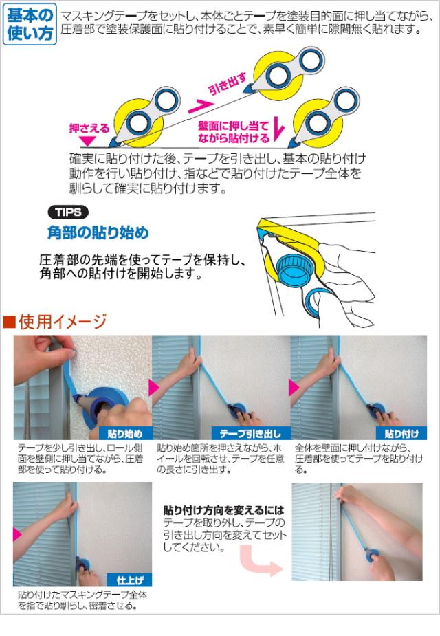面倒で時間のかかる隅のマスキング作業を、素早く確実に行えるテープホルダーです。