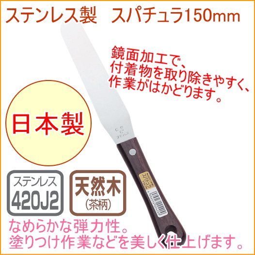 ステンレス製 スパチュラ 150mm 木柄 (No.420) 日本製 製菓 お菓子 ケーキ 塗りつけ 貼 パレットナイフ 製菓道具