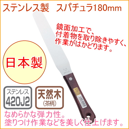 ステンレス製 スパチュラ 180mm 木柄 (No.425) 日本製 製菓 お菓子 ケーキ 塗りつけ 貼 パレットナイフ 製菓道具