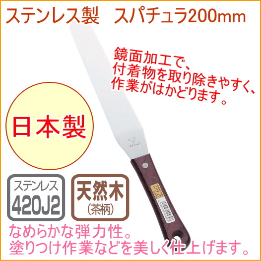 ステンレス製 スパチュラ 200mm 木柄 (No.430) 日本製 製菓 お菓子 ケーキ 塗りつけ 貼 パレットナイフ 製菓道具