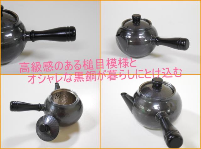 純銅黒銅仕上げ 槌目急須 横手 茶こし付き 370ml (BC-112) 日本製 送料無料 銅製品 銅 ティーポット