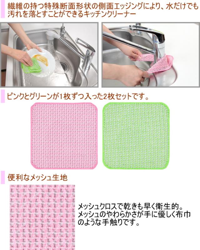 キッチンピカイチ 2枚入 BO-49 日本製 サンコー キッチン雑貨 キッチン メッシュクロス クロス クリーナー 汚れ 油汚れ ネコポス対応