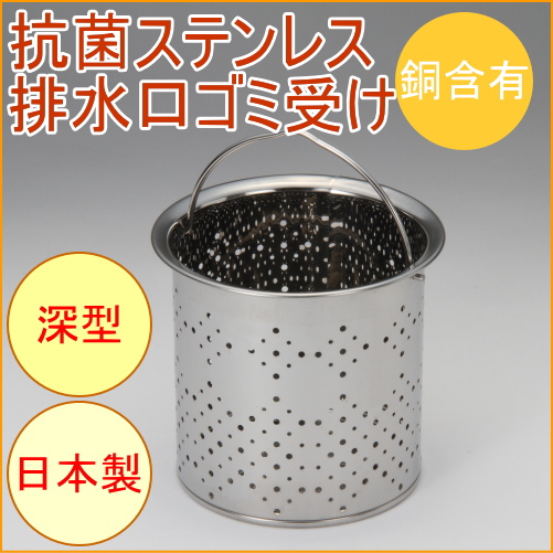 抗菌ステンレス 排水口ゴミ受け 深型125mm高 (CK-113) 銅イオン抗菌 日本製 キッチン おしゃれ 排水溝