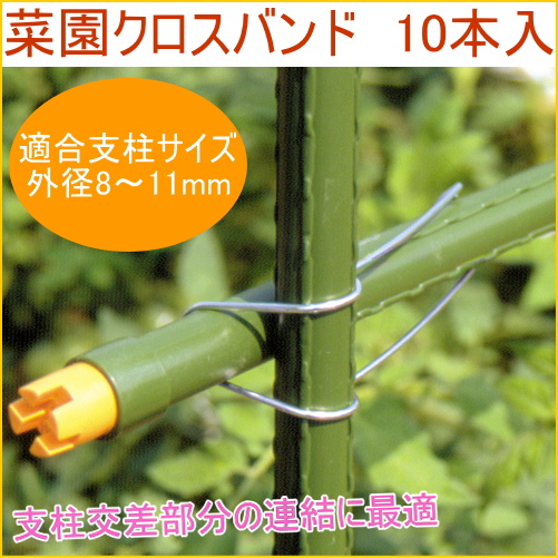 菜園クロスバンド 10本入り 外径8〜11mm支柱用 菜園 畑 庭 支柱 栽培 花 野菜 防止 固定 補助 茎 苗 連結 簡単