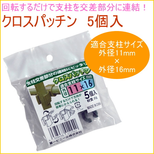クロスパッチン 5個入り 外径11×16mm支柱用 菜園 庭 家庭用 支柱 栽培 花 野菜 防止 固定 補助 連結 簡単
