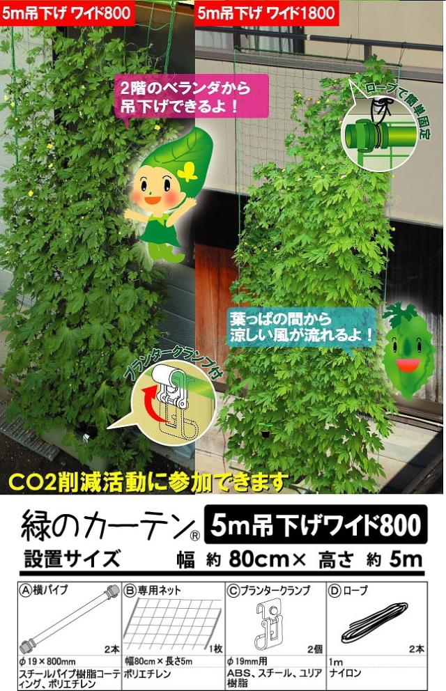 緑のカーテン 5m ワイド800 吊下げタイプ 園芸 ガーデニング 家庭菜園 庭 グリーンカーテン 緑のカーテン