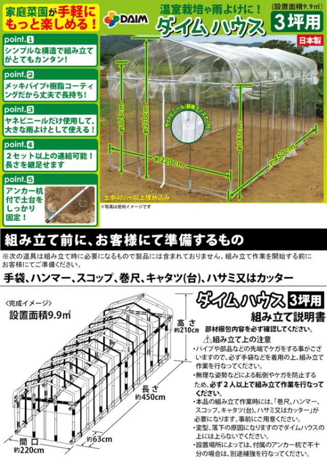 ダイムハウス 3坪用 送料無料 ビニールハウス ガーデンハウス 菜園ハウス 花 野菜 保温 雨よけ 鳥よけ 防鳥 霜よけ