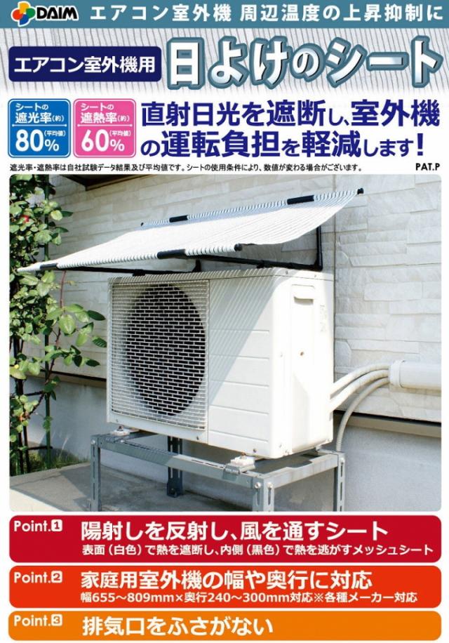 室外機への直射日光を防ぎ、室外機周辺温度の上昇を抑制します。