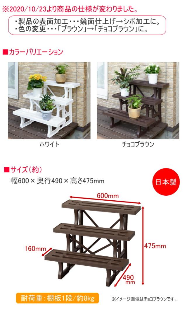 フラワースタンド 3段 600mm幅 日本製 園芸 ガーデニング ガーデン ラック 鉢置き 植木鉢 整理 シンプル