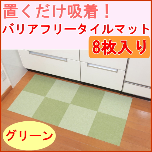 バリアフリー タイルマット グリーン 無地8枚入 (KD-33) インテリア マット タイル カーペット タイルカーペット