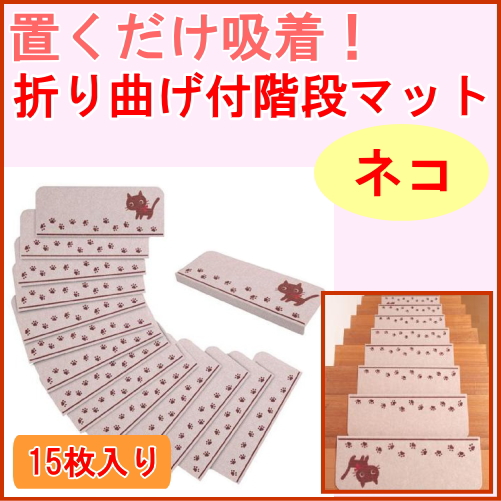 折り曲げ付階段マット ネコ 15枚入り (KD-57) マット 滑り止め すべり止め 階段 転倒防止 防止 ずれない
