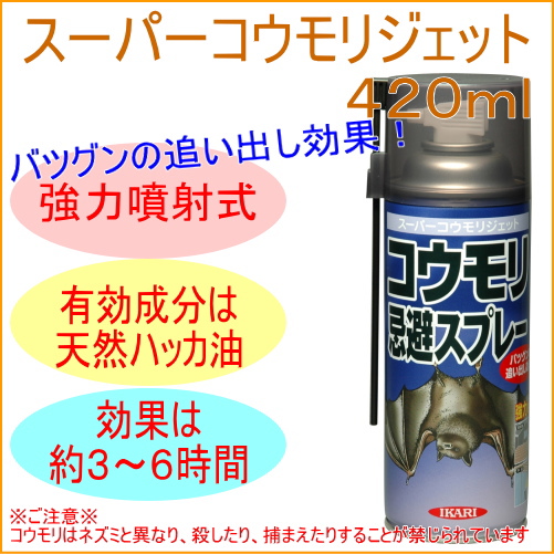 スーパーコウモリジェット 420ml 害獣 害鳥 こうもり 蝙蝠 スプレー 噴霧 強力ノズル 侵入 追い出す 天然香料 安全 安心