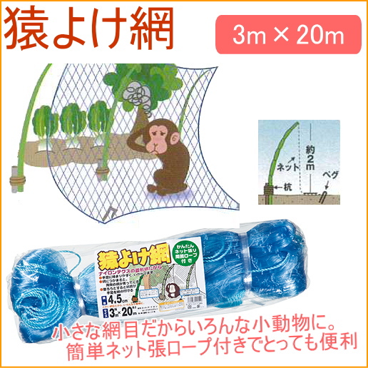猿よけ網 ブルー 3m×20m 家庭菜園 家庭農園 家庭用 畑 庭 栽培 保護 防虫 防獣 手軽 便利 キズ 傷 獣 小動物