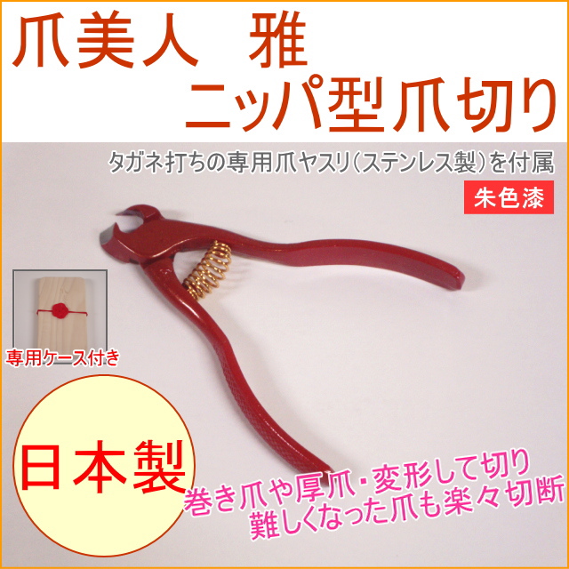 爪美人 雅 ニッパ型爪切り 朱色漆 金粉入り 白木ケース入り 日本製 ニッパー 熱間鍛造 手入れ 和 和風 金粉 朱色