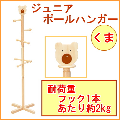 ジュニアポールハンガー くま ナチュラル (N-7804) 組立式 収納 幼児 キッズ 子供 子ども 子供用 ハンガー